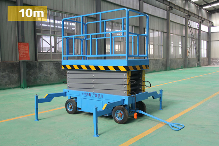 采用可转向牵引杆,牵引杆带转轴,拖动升降机时可转弯控制方向。根据设备自重不同配有拖车式和手拉式;